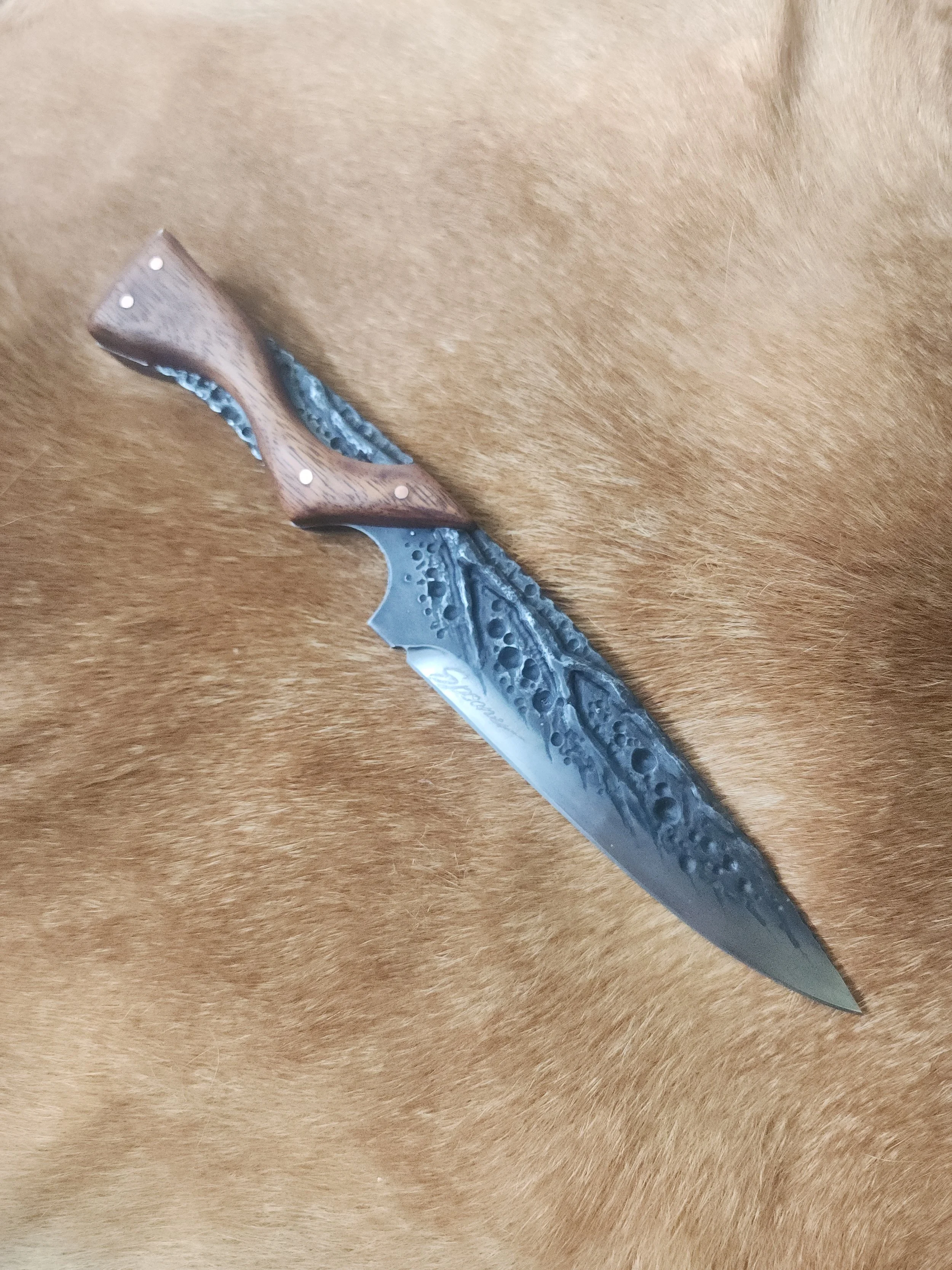 the perfect gift for any occasion › "vascular" hunter Image 1 of 1 "vascular" hunter $525.00 5.5” 1084 carbon steel sculpted blade with blackwood scales and copper pins Add To Cart Added! 5.5” 1084 carbon steel sculpted blade with blackwood scales and copper pins